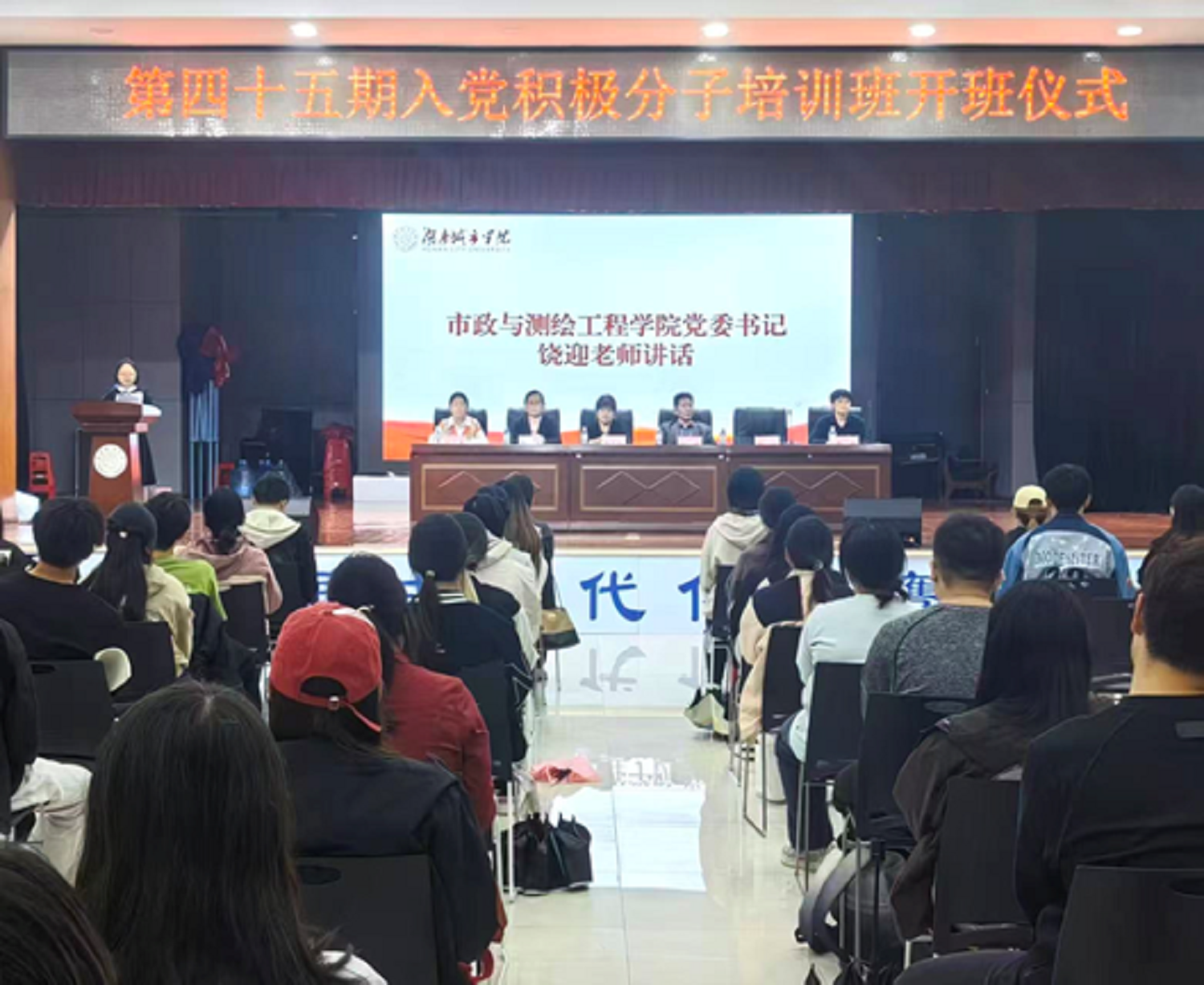 市政与测绘工程学院党委书记饶迎作培训动员讲话。她围绕入党积极分子的政治素养、学习态度与实践要求,结合培训目标与学员成长需求,对学员提出三点期望:一是筑牢思想根基,深刻认识培训意义,悟透党的创新理论;二是严守学习纪律,以端正态度完成学习任务,确保学有所获;三是要坚持学用结合,将培训所学与专业学习、校园服务、社会奉献紧密结合,积极发挥先锋模范作用,以实际行动接受党组织的考验。