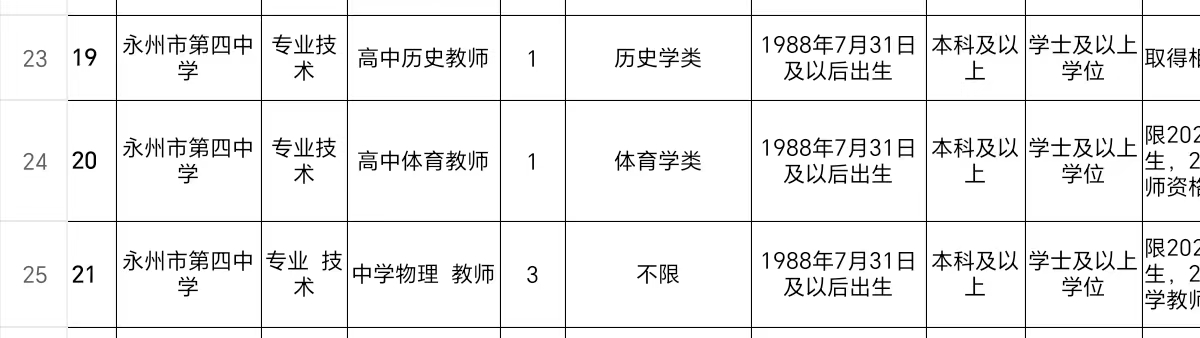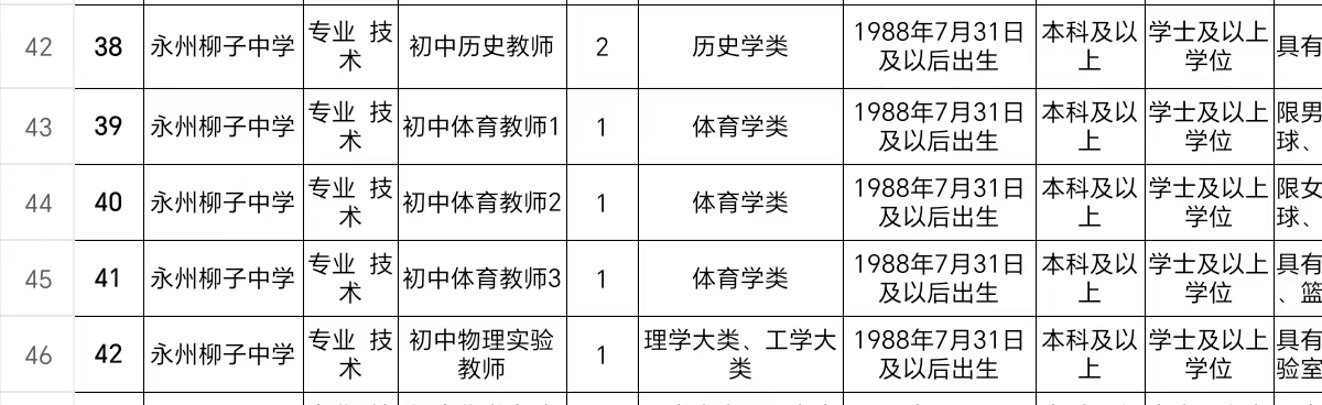 1.永州市教育局直属学校2024年公开招聘教师岗位表