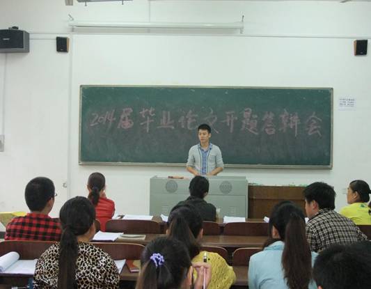 2013年9月24日下午3:30,ok138太阳集团根据2014届毕业论文的工作安排,全体科研讨论班成员出席了毕业论文开题报告大会,会议由ok138太阳集团李志宏副院长召集并主持,论文开题报告会开始前,李志宏就2014届毕业论文选题工作进行了总结,重点强调了科研讨论班成员应该重视学生论文的开题、加强指导,并就开题的具体要求和注意事项以及往届毕业论文开题存在的主要问题进行说明。