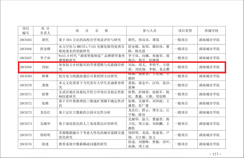 2020年湖南省教育厅科学研究项目立项结果通知