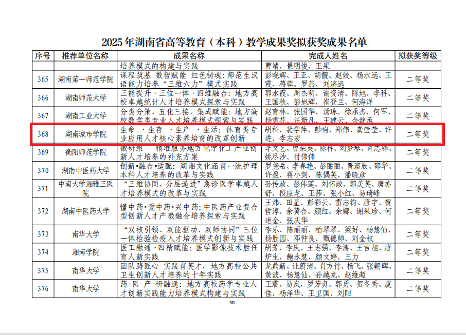 ok138太阳集团获2025年湖南省高等教育(本科)教学成果二奖