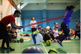 (通讯员:龚莹莹)本学期,体操教研室以“开展有效教研活动,切实解决教学问题”为出发点,积极开展形式多样切实有效的教研活动。既老教师教学大比武活动之后,在学院党政领导班子的高度重视和支持下,2014年11月8-9日,由体操教研室主任龚莹莹老师带队,刘文魁、曾卫平、陈莉红、欧岳山、霍赞东、任平、朱丹妮8位老师参加了有近200位来自大学、初高中及小学的体育老师们参加的耐克校园体育训练营广州站的培训。两天20节包括普通大学生公共体育课教学、学校各专项运动队、有氧舞蹈类型三大模块课程充实地学习,大家都满载而归。