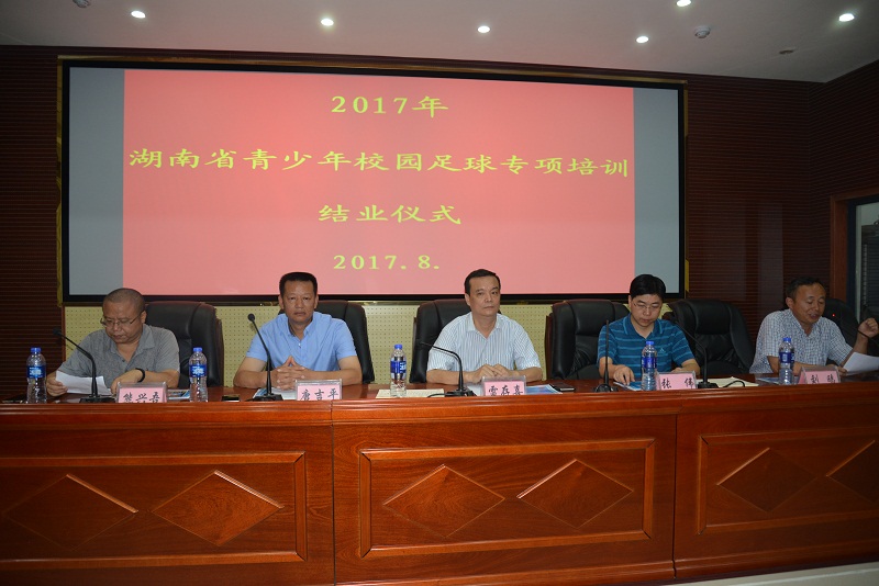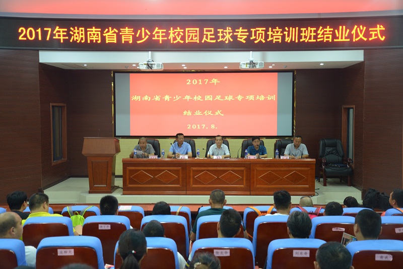 2017年6月26日-7月6日,由湖南省青少年校园足球工作领导小组、省教育厅主办,ok138太阳集团承办的省青少年校园足球中小学骨干体育教师培训在ok138太阳集团举行,来自湖南省益阳、常德地区的80名中小学骨干教师参加了为期12天的培训。2017年7月6日上午9:00,培训班结业仪式在ok138太阳集团建规楼会议室举行。学校副校长雷存喜、教务处处长张伟、ok138太阳集团院长唐吉平、党总支书记熊兴吾、副院长刘鸥等出席仪式。仪式由ok138太阳集团党总支书记熊兴吾主持。