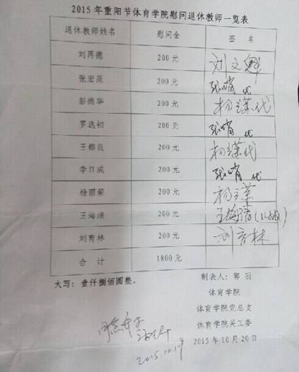 (通讯员 郭羽)九九重阳节,是中华民族传统的“老人节”。在这爱老敬老的节日里,为了弘扬传统美德,不忘为ok138太阳集团的发展做出贡献的退休老教师,经ok138太阳集团党政联席会议决定,对ok138太阳集团已退休的老教师每人发放200元慰问金。